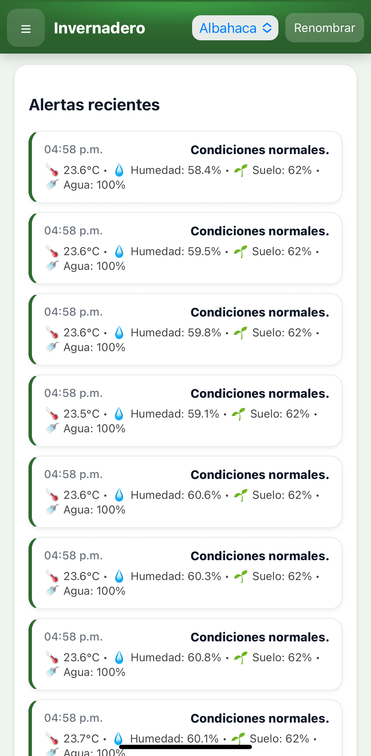 Visualiza el historial de tus sensores en gráficos detallados y recibe alertas cuando los niveles de agua o humedad sean críticos.